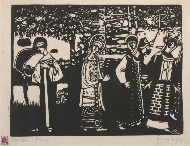Keywords: W.Kandinsky, Frauen im Wald, 1907.jpg fr Titre Femmes dans les bois Frauen im Wald Technique Xylogravure Dimension image 14 6 × 19 4 cm; feuille 16 8 × 21 6 cm Institution The Hilla von Rebay Foundation On extended loan to the Solomon R Guggenheim Museum New York 1970 1411 en Title Women in the Woods Frauen im Wald Technic Woodcut Size image 14 6 × 19 4 cm; sheet 16 8 × 21 6 cm Institution The Hilla von Rebay Foundation On extended loan to the Solomon R Guggenheim Museum New York 1970 1411 1907 http //blogs guggenheim org/checklist/kandinskys-early-representational-woodcuts/ Creator Wassily Kandinsky other versions PD-Art Uploaded with UploadWizard Woodcuts by Wassily Kandinsky |