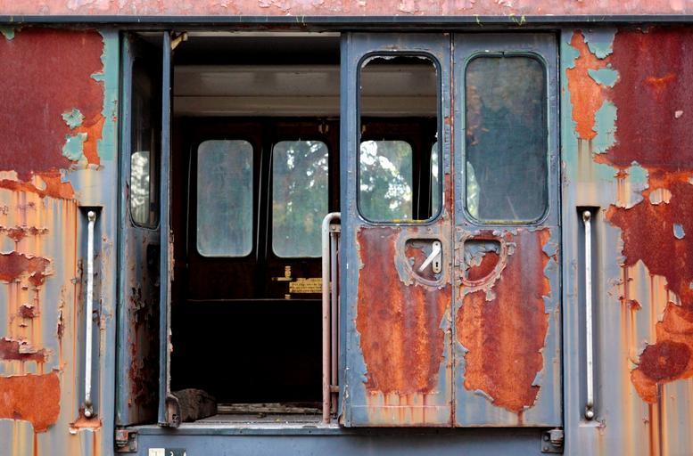 Keywords: wagon trains railway station railway old rusted train transport wreck railway carriages obsolete turned off retired stainless vandalism door
