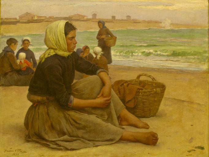 | Keywords: Waiting for the boats (1892) - Marques de Oliveira (1853-1927) (16215690116).jpg  Museu Nacional de Arte Contemporânea MNAC Lisbon Portugal Oil on canvas JOÃO MARQUES DA SILVA OLIVEIRA nasceu no Porto a 23 de Agosto de 1853 Iniciou a sua aprendizagem artÃstica com o pintor António José da Costa antes de se matricular na Academia Portuense de Belas-Artes escola que frequentou entre 1864 e 1873 foram seus mestres entre outros Tadeu de Almeida Furtado e João António Correia Em 1873 concorreu à bolsa do Estado para pensionista no estrangeiro na classe de Pintura de História a par de Silva Porto que se candidatou na categoria de Paisagem Em Paris matriculou-se na Escola Nacional de Belas Artes onde teve como professores Cabanel e Yvon Nesta cidade teve a oportunidade de contactar com novas tendências estéticas nomeadamente com os artistas com ligações à escola de Barbizon Em 1876 após uma visita de estudo à Bélgica Holanda e Inglaterra partiu para Itália onde iria permanecer até meados de 1878 ano em que retorna a Paris Regressado definitivamente a Portugal em 1879 foi nomeado Académico da Academia Portuense; em 1881 substituiu Tadeu Furtado na cadeira de Desenho Histórico e em 1895 foi transferido para a de Pintura Histórica em substituição de João António Correia A sua actividade docente que se prolongou até 1926 foi marcante pela iniciação dos alunos à nova estética do naturalismo Promovia sessões de trabalho no exterior estimulando o exercÃcio da pintura no contacto directo com a natureza insistindo na qualidade do desenho como base de execução de qualquer obra Paralelamente à actividade de professor um pouco à semelhança do que acontecia em Lisboa em torno do Grupo do Leão em cuja génese se envolveu Silva Porto Marques de Oliveira participou activamente nos movimentos de renovação artÃstica no Porto ainda em 1880 participou na fundação do Centro ArtÃstico Portuense e do seu órgão A Arte Portuguesa e mais tarde na organização das Exposições de ™Arte que se realizaram no Ateneu Comercial do Porto No conjunto da vasta obra de pintura que realizou e que se encontra dispersa por instituições públicas e privadas e colecções particulares assumem particular significado as que dedicou aos grandes temas da Paisagem e do Retrato A sua actividade ficou ainda marcada pela pintura decorativa e religiosa feita a partir de encomenda e ainda à ilustração de livros e revista Ao longo de toda a sua carreira Marques de Oliveira participou em numerosas exposições nacionais e internacionais Em 1929 dois anos após a morte foi-lhe prestada homenagem no Porto com a inauguração de um monumento em sua honra no Jardim de S Lázaro e uma grande exposição da sua obra realizada no Ateneu Comercial do Porto https //www flickr com/photos/pedrosimoes7/16215690116/ Waiting for the boats 1892 - Marques de Oliveira 1853-1927 2015-01-04 16 51 https //www flickr com/people/46944516 N00 Pedro Ribeiro Simões from Lisboa Portugal 38 708796 -9 141858 source Flickr cc-by-2 0 pedrosimoes7 http //flickr com/photos/46944516 N00/16215690116 2015-04-10 07 50 13 cc-by-2 0 PD-old-auto-1923 1927 João Marques de Oliveira 1880s paintings from Portugal 1892 paintings Paintings in the Museu do Chiado People at the beach in art Naturalist paintings Beaches of Póvoa de Varzim People at the beach in Portugal Photos by Pedro Ribeiro Simões National costumes of Portugal Paintings of girls sitting on the ground outdoors |
