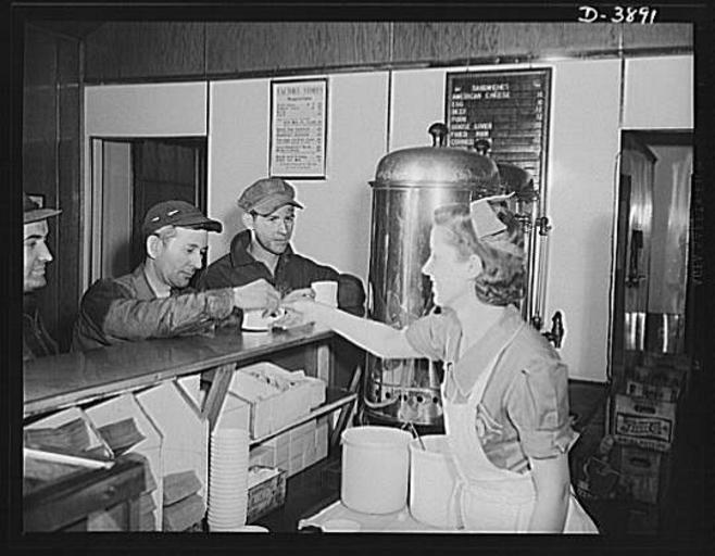 | Keywords: Waitress 1941.jpg en Steel production Hot coffee for steel workers A waitress serves employees of a big Eastern plant in the company restaurant Republic Youngstown 2013-12-03 11 51 57 Farm Security Administration Alfred T Palmer PD-USGov Uploaded with UploadWizard Uncategorized 2013 December 3 |