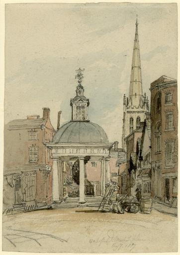 Keywords: Wakefield Market Place, Yorkshire by George Arnald.jpg en Wakefield Market Place Yorkshire graphite with watercolour by the British painter George Arnald The painting shows a view of a columned structure which stands at the intersection of several streets Courtesy of the British Museum London British Museum http //www britishmuseum org/research/search_the_collection_database/search_object_details aspx objectid 749251 partid 1 searchText wakefield fromADBC ad toADBC ad titleSubject on numpages 10 images on orig 2fresearch 2fsearch_the_collection_database aspx currentPage 1 George Arnald 1817 PD-old-100 1817 paintings Wakefield West Yorkshire city Paintings of cities Watercolor paintings George Arnald |