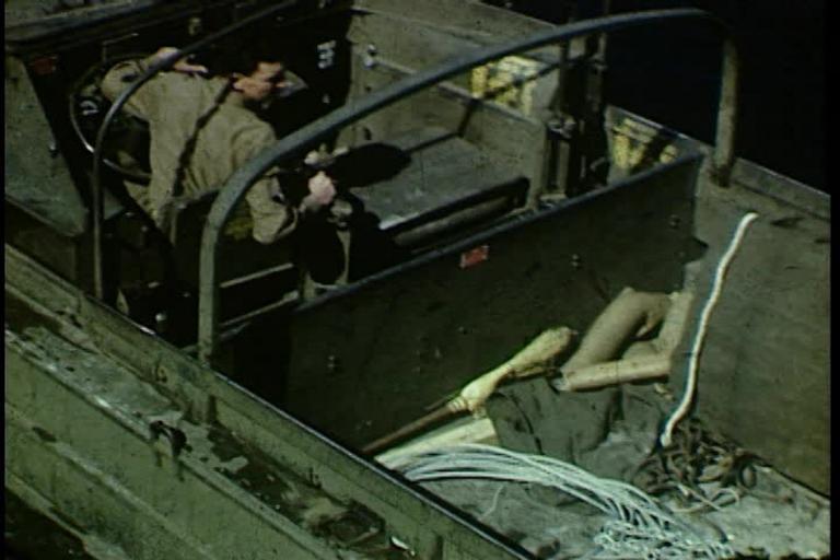 | Keywords: florida wakulla springs wakullasprings military training militarytraining duck boats duckboats explosions underwater photography underwaterphotography underwater explosions underwaterexplosions dukw Persistent URL: www.floridamemory.com/items/show/296311 Title: Wakulla Springs Military Training and Underwater Explosions Date of film: ca. 1942 Physical descrip: 6:46; color; silent Local call number: V-258; BA437 General note: This film includes shots of underwater explosions in the Wakulla River and Springs. Armed troops patrol through the woods. In the water, promoter and expert swimmer Newt Perry holds up large roots and stumps apparently dislodged by the explosions. The film shows a young man using a small movie camera. A GMC DUKW amphibious vehicle, or "Duck,” with troops on board moves through the springs, emerges on land and goes back into the water. A Wakulla Springs tour boat is in the distance. The film includes underwater footage of the Duck. To see full-length versions of this and other videos from the State Archives of Florida, visit www.floridamemory.com/video/. Repository: State Library and Archives of Florida, 500 S. Bronough St., Tallahassee, FL 32399-0250 USA. Contact: 850.245.6700. Archives@dos.myflorida.com Persistent URL: www.floridamemory.com/items/show/296311 Title: Wakulla Springs Military Training and Underwater Explosions Date of film: ca. 1942 Physical descrip: 6:46; color; silent Local call number: V-258; BA437 General note: This film includes shots of underwater explosions in the Wakulla River and Springs. Armed troops patrol through the woods. In the water, promoter and expert swimmer Newt Perry holds up large roots and stumps apparently dislodged by the explosions. The film shows a young man using a small movie camera. A GMC DUKW amphibious vehicle, or "Duck,” with troops on board moves through the springs, emerges on land and goes back into the water. A Wakulla Springs tour boat is in the distance. The film includes underwater footage of the Duck. To see full-length versions of this and other videos from the State Archives of Florida, visit www.floridamemory.com/video/. Repository: State Library and Archives of Florida, 500 S. Bronough St., Tallahassee, FL 32399-0250 USA. Contact: 850.245.6700. Archives@dos.myflorida.com |