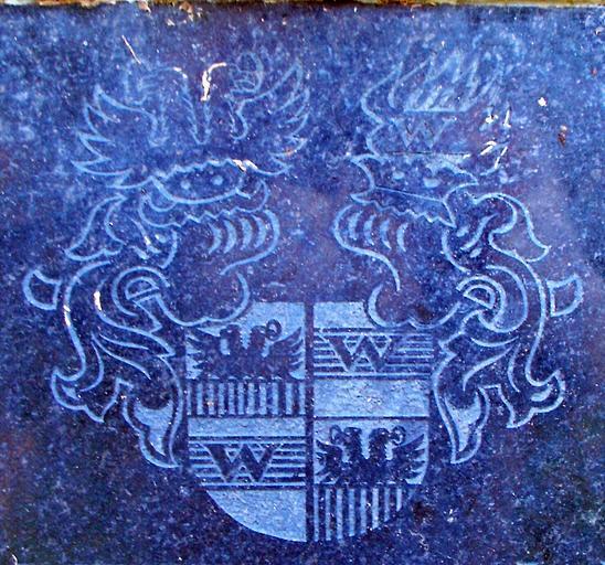 Keywords: Walck Wappen3.JPG de Familienwappen der Edlen von Walck von Familiengrab auf dem Neuen Friedhof Speyer own Kumbalam 2012-07-12 Coats of arms of Edlen von Walck family Speyer Cc-zero