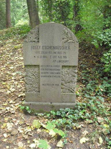 | Keywords: Waldfriedhof Schloss Neuhaus-Gedenkstein Eschenbüscher.JPG de Gedenkstein für Josef Eschenbüscher auf dem Waldfriedhof in Schloß Neuhaus own Athde 2011-10-18 de Images from Wiki Loves Monuments 2013 DE-NW Waldfriedhof Schloß Neuhaus World War I memorials in North Rhine-Westphalia WWI related images from Wiki Loves Monuments 2013 German inscriptions in Paderborn Cc-zero | ||||