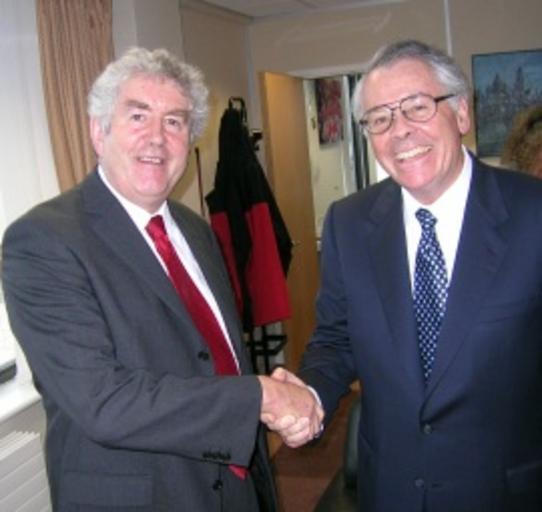 Keywords: Wales morgan and amb.jpg First Minister of Wales Rhodri Morgan and Ambassador Tuttle meet in w Cardiff http //www usembassy org uk/ukamb/tuttle018 html U S Embassy to the United Kingdom 2005-10-07 PD-USGov October 2005 in the United Kingdom 2005 in Cardiff Men looking at viewer handshakes Rhodri Morgan Robert H Tuttle |