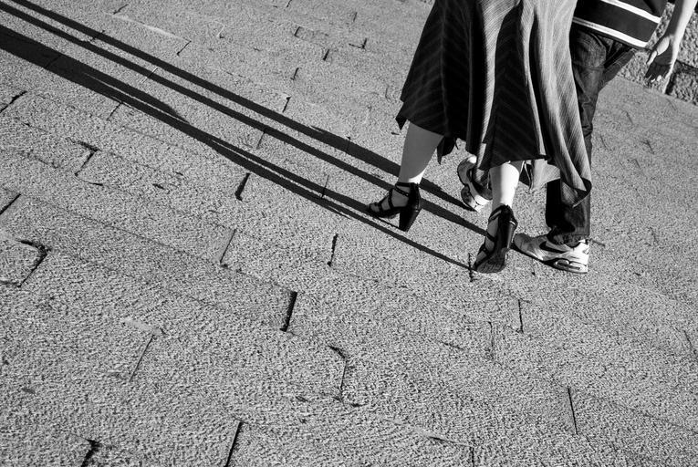 Keywords: walk shadows perspectives feet ground people walking half body black and white