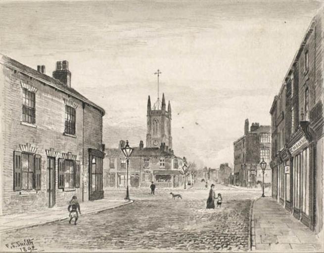 Keywords: Walker Street and St. James' Church in distance , 1892.jpg en Walker Street and St James' Church in distance 1892 1892 www hullcc gov uk/museumcollections Smith Frederick Schultz 1860-1925 PD-Art PD-old-auto-1996 1925 GB Uploaded with UploadWizard Frederick Schultz Smith Historic images of churches in Kingston upon Hull by F S Smith