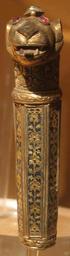 Keywords: Walking stick handle, central India, 19th century, iron, gold and silver gilt, rubies, emeralds and enamel, HAA.JPG en Walking stick handle central India 19th century iron gold and silver gilt rubies emeralds and enamel Honolulu Academy of Arts own Hiart photo 2011 Mughal art in the Honolulu Museum of Art Canes Silverware in India Gold objects in India Cc-zero |