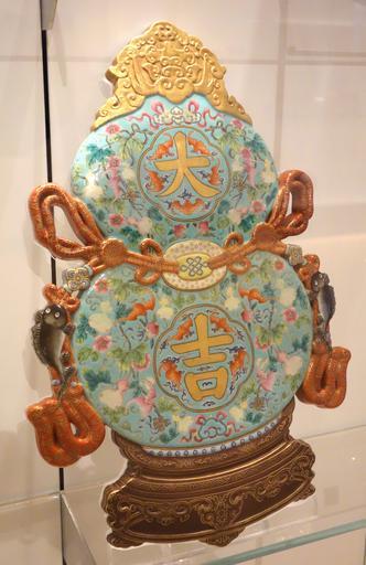 Keywords: Wall plaque with inscription 'daji' (very auspicious), China, Qing dynasty, 19th century, glazed porcelain - Royal Ontario Museum - DSC04303.JPG en Exhibit in the Royal Ontario Museum Toronto Ontario Canada This work is old enough so that it is in the public domain Photography was permitted in the museum without restriction 2013-10-08 15 18 09 own Daderot cc-zero Chinese ceramics in the Royal Ontario Museum Uploaded with UploadWizard |