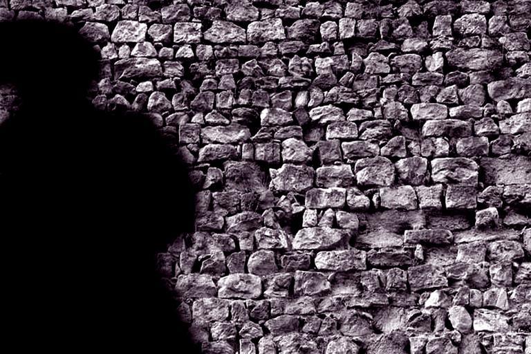 Keywords: wall quarry stone home stone facade building masonry background color texture shadow person natural stone light dark modified graphically