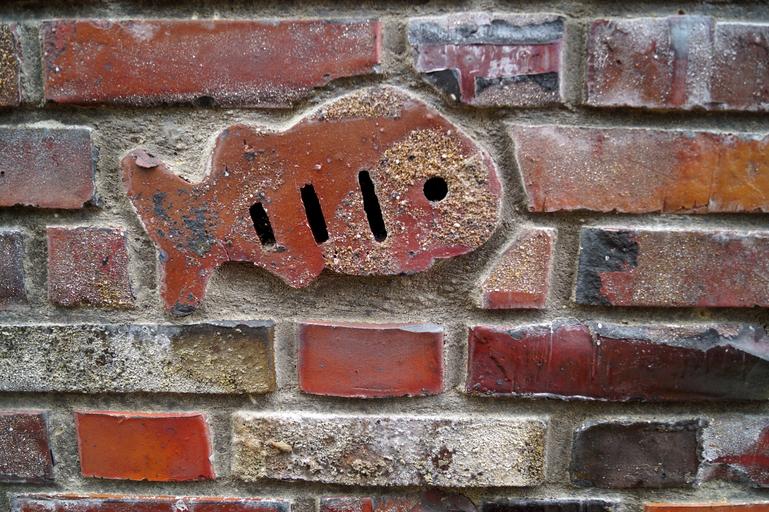 Keywords: wall stones fish fish symbol deco north sea figure bricks