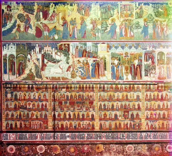 View Original:Wallpainting_of_the_first_three_tiers_of_the_north_wall_in_the_central_church_of_the_Church_of_St._John_the_Precursor_(Prokudin-Gorsky).jpg (3066x2781)