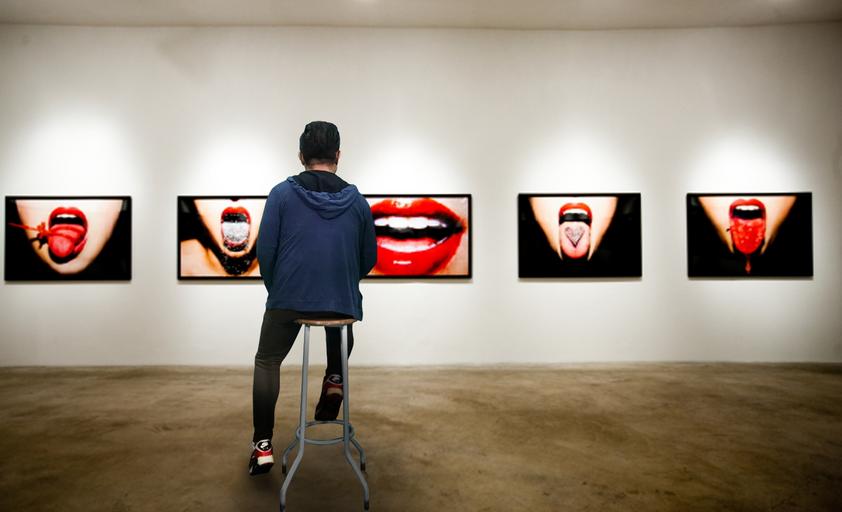 Keywords: wallpaper wall gallery stool graphic lips mouth arts art people