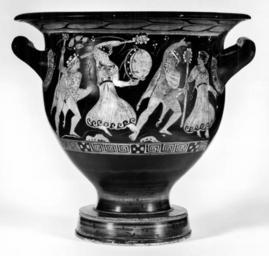 MAKE A MEME View Large Image ...Dresden Painter - Bell-Krater with Satyrs and Maenads and Three Draped Men - Walters 4875 - Side A.jpg This red-figure bell-krater depicts satyrs and maenads revelling on the front On the left a satyr wearing a fawn skin for a cloak and a ...
