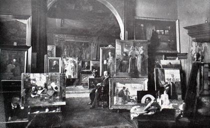 | Keywords: Walther Firle (1859–1929) in seinem Atelier 1917.jpg Walther Firle in seinem Atelier; 1917 <br /> en Walther Firle German painter in his studio; 1917 Austrian Newspaper Sport und Salon February 4 1917 p 14<br />http //anno onb ac at/cgi-content/anno aid sus datum 19170204 seite 14 zoom 33 before 1917-02-04 author The photographer is unknown and not mentioned in the source PD-because der Fotograf unbekannt und in der Quelle nicht erwähnt ist 1917 PD-old Walther Firle | ||||