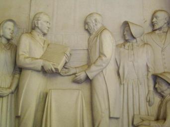 Keywords: Wandafbeelding.jpg 'n Paneel van die historiese fries in die Heldesaal van die Voortrekkermonument Pretoria In hierdie paneel een van 27 word 'n bybel wat tans in die Senotaafsaal gehuisves word deur vrederegter Thomas Phillipshttp //archiver rootsweb ancestry com/th/read/SOUTH-AFRICA/2003-11/1068913410 namens die Britse setlaars van Grahamstad aan trekker J J Uys<ref name Uys> Cite journal Uys Ian S A Boer family Military History Journal 3 6 http //samilitaryhistory org/vol036iu html 1976-12 </ref> oorhandig Die panele in Quercetta-marmer<ref name beeld> cite journal Rademeyer Alet ˜Klipouma ™ kon jas skoene koop http //www beeld com/Suid-Afrika/Nuus/Klipouma-kon-jas-skoene-koop-20121025 26 Oktober 2012 Beeld 2012-10-25 22 48 </ref> beeld tonele uit vanaf die uittog uit die oos-Kolonie in 1835 tot die ondertekening van die Sandrivierkonvensie in 1852 A panel of the historical frieze in the Hall of Heroes of the Voortrekker Monument Pretoria In this panel one of 27 a bible which is currently in the Cenotaph Hall exhibit is presented by Thomas Phillips left on behalf of the British settlers of Grahamstown to voortrekker J J Uys right <ref name Uys/> The panels in Quercetta marble<ref name beeld/> portray scenes from the Trekker departure from the Colony's frontier in 1835 to the signing of the Sand River Convention in 1852 reflist own work 2006-01-14 Eduard van Velde Related panel “ deaths of J J Uys's son and grandson<br> 70px Voortrekker Monument 1820 Settlers |