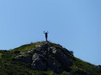 Keywords: wanderin person human woman wave gipfelchen hike mountains mountain grassy slope trail maritime alps gta grande traversata delle alpi long distance trail alpine monte pianard
