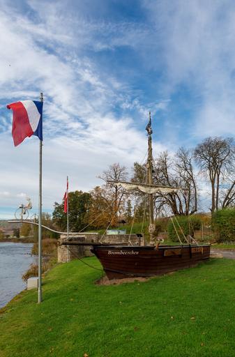 Keywords: wanfried germany sky clouds flag ship sculpture park water river stream trees grass nature outside fall autumn scenic colorful foliage colors