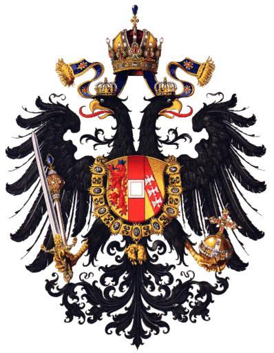 | Keywords: Wappen Kaisertum Österreich 1815 (Klein).png Imperial Coat of Arms of the Empire of Austria 1815 svg Kaisertums Österreich seit dem Wiener Kongress 1815 “1867 danach kleines Wappen der im Reichsrat vertretenen Königreiche und Länder Cisleithanien 1867 “1915 <br/> Es zeigt das Hauswappen Habsburgs mit dem Orden vom Goldenen Vlies als Brustschild des Österreichischen Doppeladlers überhöht von der Rudolfskrone<br/>Nach 1915 zeigt der Brustschild nurmehr den rot-weiß-roten Bindenschild en Smaller coat of arms of the Empire of Austria form Congress of Vienna 1815 “1867 after this smaller coat of arms of the Realms and Countries represented in the Reichrat vulgo Cisleithania 1867 “1915 <br/>It shows Habsburg with the Order of Golden Fleece lying on the Austrian Doubleheaded Eagle with the Crown of Rudolf <b/> From Austria after 1915 it shows the red-white-red Bindenschild Reference http //peter-diem at/History_2/his2 htm Peter Diem Die Entwicklung der Wappen der Österreichisch-Ungarischen Monarchie http //peter-diem at/History/doppeladler htm Peter Diem Die Entwicklung des österreichischen Doppeladlers Wappenrolle Österreich-Ungarns nach H Ströhl http //peter-diem at/History_2/1815_kl jpg 2006-10-24 Creator Hugo Gerhard Ströhl Hochgeladen von David Liuzzo PD-old-auto 1919 State coats of arms of the Empire of Austria 1815 Coats of arms of Francis II as Emperor of Austria Francis I Order of the Golden Fleece in heraldry Imperial crowns Crowns in heraldry Crowned double-headed eagle in supporters Wappenrolle Österreich-Ungarns |