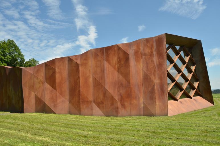 Keywords: war second world war concentration camp labor camp caught commemorate soldier military hinzert germany metal rust building modern architecture