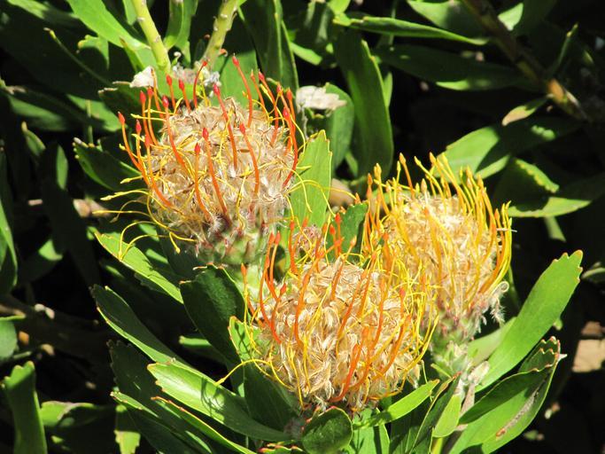 Keywords: Waratahs White.JPG Leucospermum conocarpodendron Waratahs White ” a Leucospermum cultivar In the botanic garden Perth WA Australia Own 2010-10 Dinkum Cc-zero Leucospermum conocarpodendron Close-ups of Proteaceae flowers Leucospermum conocarpodendron Note I am just begining with the names of flowers Please bear with me As this photo was taken in Western Australia Banksia formosa seemed to be appropriate However if you look at the form of the leaves you'll see that they are different On the other hand I found in my books recently purchased a drawing of Leucospermum conocarpodendron And for this flower the leaves have the same form and the inflorescence is identical So I think I took a photo of Leucospermum conocarpodendron that day in the Botanic Garden in Perth |