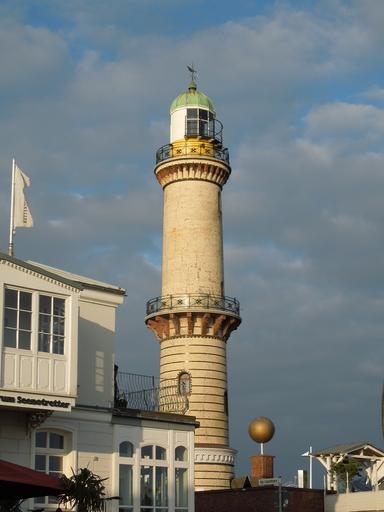Keywords: warnemünde lighthouse sky baltic sea coast clouds tower