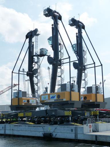 Keywords: warnemünde rostock mecklenburg western pomerania port northern germany sea holiday crane harbour cranes seaport loads force raise