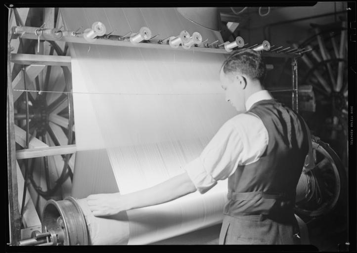 | Keywords: nara:arcid=518557 u.s. national archives usnationalarchives lewis hine lewishine 1937 paterson new jersey newjersey the great depression thegreatdepression blackandwhite monochrome photo border people black and white Original Caption: Paterson, New Jersey - Textiles. Warp threads being wound off of the frame on to the beam, March 1937 U.S. National Archives’ Local Identifier: 69-RP-318 Photographer: Hine, Lewis Subjects: The New Deal Tennessee Valley Authority Works Progress Administration Work Portraits The Great Depression Persistent URL: research.archives.gov/description/518557 Repository: Still Picture Records Section, Special Media Archives Services Division (NWCS-S), National Archives at College Park, 8601 Adelphi Road, College Park, MD, 20740-6001. For information about ordering reproductions of photographs held by the Still Picture Unit, visit: www.archives.gov/research/order/still-pictures.html Reproductions may be ordered via an independent vendor. NARA maintains a list of vendors at www.archives.gov/research/order/vendors-photos-maps-dc.html Access Restrictions: Unrestricted Use Restrictions: Unrestricted Original Caption: Paterson, New Jersey - Textiles. Warp threads being wound off of the frame on to the beam, March 1937 U.S. National Archives’ Local Identifier: 69-RP-318 Photographer: Hine, Lewis Subjects: The New Deal Tennessee Valley Authority Works Progress Administration Work Portraits The Great Depression Persistent URL: research.archives.gov/description/518557 Repository: Still Picture Records Section, Special Media Archives Services Division (NWCS-S), National Archives at College Park, 8601 Adelphi Road, College Park, MD, 20740-6001. For information about ordering reproductions of photographs held by the Still Picture Unit, visit: www.archives.gov/research/order/still-pictures.html Reproductions may be ordered via an independent vendor. NARA maintains a list of vendors at www.archives.gov/research/order/vendors-photos-maps-dc.html Access Restrictions: Unrestricted Use Restrictions: Unrestricted |