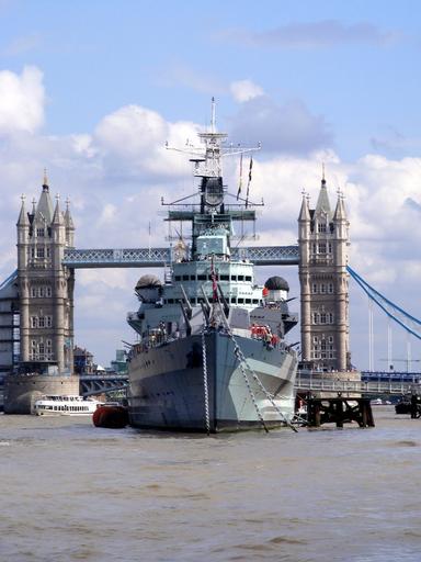 Keywords: warship cruiser water thames london bridges