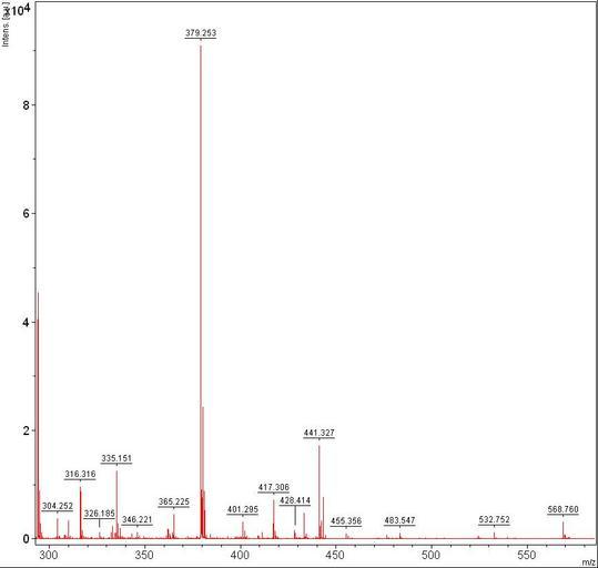 Keywords: WasabiMALDISpectrum.JPG en A Matrix-assisted laser desorption/ionization spectrum of a sample of wasabi sauce collected at a local sushi bar in Philadelphia PA own JBrooks165 2011-01-21 Wasabi Bar charts