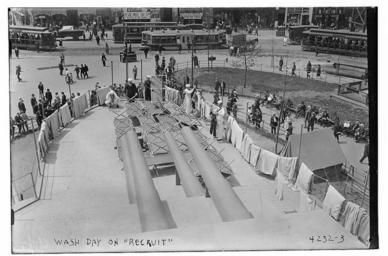MAKE A MEME View Large Image Wash day on RECRUIT (LOC) (18556623213).jpg Bain News Service publisher Wash day on RECRUIT between ca 1915 and ca 1920 1 negative glass ; 5 x 7 in or smaller Notes Title from unverified data provided by the Bain News Service on the ...