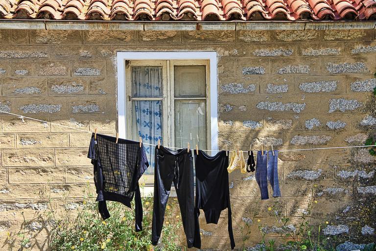 Keywords: wash laundry clothes line dry dry laundry clothespins garments washed mediterranean out window wall hauswand stone wall tile underwear shirt pants sweater