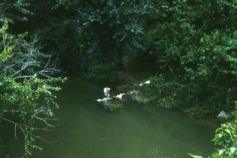 Keywords: Wash Woman.jpg en Woman washing cloths in a stream - no need for the Maytag Repair Man Allen Drebert Allen Drebert 1957-1961 Women of Nicaragua Nature of Nicaragua Washing laundry Rivers of Nicaragua