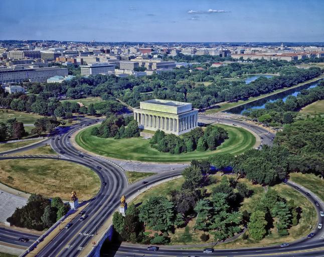 Keywords: washington dc city cities urban aerial view hdr lincoln memorial trees roads landmark historic architecture nature outside cityscape