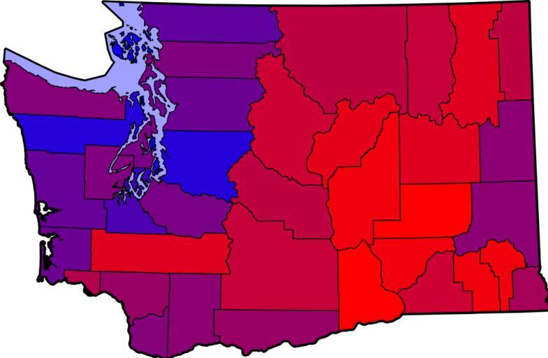 Keywords: Washington Gubernatorial 2008.svg Results of 2008 Washington gubernatorial election 100 red indicates ~70 of vote for Dino Rossi 100 blue indicates ~70 of vote for Christine Gregoire Colors are blended proportionately to vote See w File_talk Washington_Gubernatorial_2008 svg for more information own 2008-11-05 Taollan82 en wikipedia Taollan82 Original upload log page en wikipedia Washington_Gubernatorial_2008 svg 2009-04-08 23 21 Taollan82 6061×3959× 525908 bytes <nowiki>Fixed Camano Island</nowiki> 2009-02-01 04 31 Taollan82 6061×3959× 525915 bytes <nowiki></nowiki> 2008-11-06 04 56 Taollan82 5936×3863× 349672 bytes <nowiki>Reverted to version as of 07 39 5 November 2008; That image is no longer accurate this one is </nowiki> 2008-11-05 23 48 ComputerGuy 5936×3863× 349674 bytes <nowiki>Reverted to version as of 06 34 5 November 2008</nowiki> 2008-11-05 07 39 Taollan82 5936×3863× 349672 bytes <nowiki>Re-colored to reflect voting margin by county</nowiki> 2008-11-05 06 34 Taollan82 5936×3863× 349674 bytes <nowiki></nowiki> 2008-11-05 06 23 Taollan82 5936×3863× 349676 bytes <nowiki> I created this work entirely by myself ~~~ </nowiki> Election maps of Washington state 2008 United States gubernatorial election maps