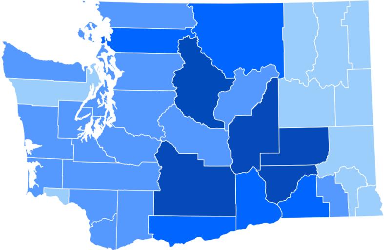 | Keywords: Washington Hispanic population percentage by county.svg Map of Washington detailing percentage of population identifying as Hispanic or Latino by county 9CCFFC 1 0 “4 9 559AFF 5 0 “9 9 0566FE 10 0 “19 9 064ABA 20 0 + own MB298 2016-03-13 Demographics of Washington state Maps of Washington state Maps of ethnic groups in the United States SVG maps by MB298 | ||||