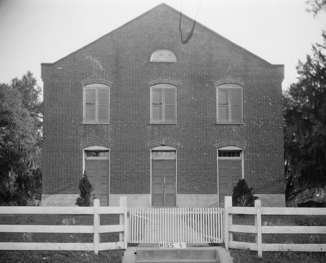 | Keywords: Washington Methodist Church.jpg  86002168 32 18 45 N 90 10 53 W Exterior of the w Washington Methodist Church located at the intersection of Main U S Route 61 and Church Streets in Washington Mississippi Washington Mississippi United States The oldest Methodist church in Mississippi it was built in 1828 and is listed on the National Register of Historic Places Library of Congress Prints and Photograph Division Historic American Buildings Survey HABS http //hdl loc gov/loc pnp/hhh ms0096 MISS 1-WASH 3-1 1936-04-15 James Butters MISS 1-WASH 3-1 No<nowiki></nowiki>ne hhh ms0096 Built in Mississippi in 1828 Churches in the United States built in 1828 1820s churches in Mississippi Black and white photographs of Mississippi Black and white photographs of religious buildings Brick churches in Mississippi James Butters Federal architecture in Mississippi Fences in Mississippi Gates in Mississippi Historic American Buildings Survey of Mississippi Methodist churches in Mississippi National Register of Historic Places in Adams County Mississippi Religious buildings on the National Register of Historic Places Wooden fences in the United States Other people's pictures by User Nyttend |