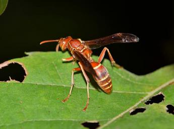Keywords: wasp paper wasp umbrella wasp insect sting stinger stinging insect flying insect winged insect winged creature animal fauna painful pain macro close up leaf vespid biology entomology arthropod polistinae