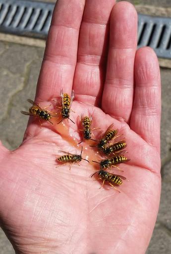 Keywords: wasps hand insect animal world animals peaceful wasps