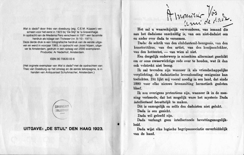 | Keywords: Wat is Dada ? p 02-03.jpg en Wat is Dada What is Dada p 2-3 nl Wat is Dada p 2-3 Theo van Doesburg 1983 1923 Wat is Dada Amsterdam Joost Nijsen p 2-3 creator Theo van Doesburg 1923 PD-old Wat is Dada Wat is Dada ? p 02-03.jpg en Wat is Dada What is Dada p 2-3 nl Wat is Dada p 2-3 Theo van Doesburg 1983 1923 Wat is Dada Amsterdam Joost Nijsen p 2-3 creator Theo van Doesburg 1923 PD-old Wat is Dada | ||||