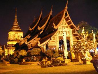 Keywords: Wat Lok Molee at night.JPG en view from south of Wat Lok Molee in central Chiang Mai Thailand Own Brian Dell Bdell555 2008-12-18 18 795975 98 98246 region TH_heading NNE Wat Lok Molee