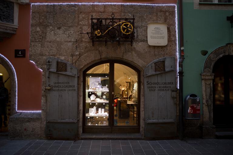 Keywords: watchmaker shop christmas lights architecture historic after dark innsbruck austria