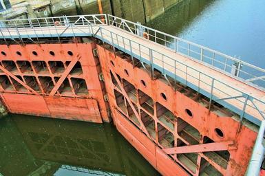 Keywords: water canal gate lock heavy crimson