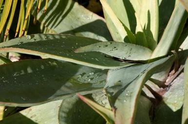 | Keywords: foliage outdoor plant leaf The waxy coating of the agave's leaves cause water to bead on their surface. CC0 waiver: To the extent possible under law, I waive all copyright and related or neighboring rights to this work. The waxy coating of the agave's leaves cause water to bead on their surface. CC0 waiver: To the extent possible under law, I waive all copyright and related or neighboring rights to this work. | ||||