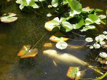 Keywords: water fish koi carp swim water lily lily fishes nature animal companions partners waterlily garden pool pond