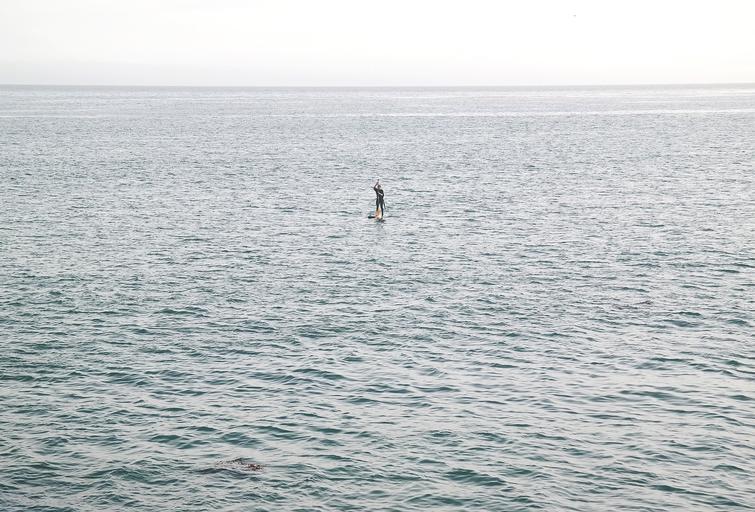 Keywords: water lake ocean sea person sport activity stand up paddling outdoor alone man male paddler board