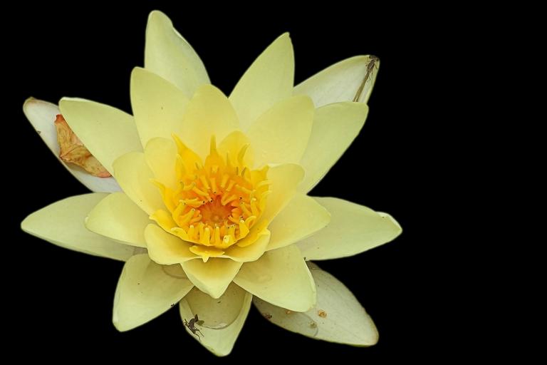 Keywords: water lily nuphar lutea aquatic plant blossom bloom black background