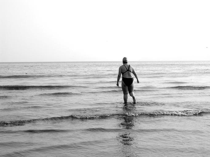 Keywords: water sea ocean shore shoreline beach coast wade paddle swim swimmer woman people recreation leisure outdoors