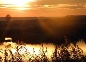 Keywords: water sky vegetation reflection sun bright sunlight calm nature environment
