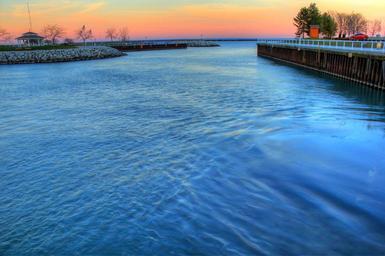 Keywords: water sunset dusk sky scenic landscape great lakes wisconsin port washington